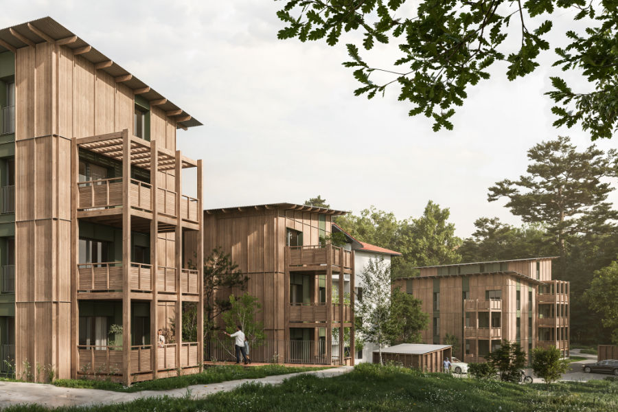 24 logements sociaux. Construits hors-site. En bois. Au Pays Basque.