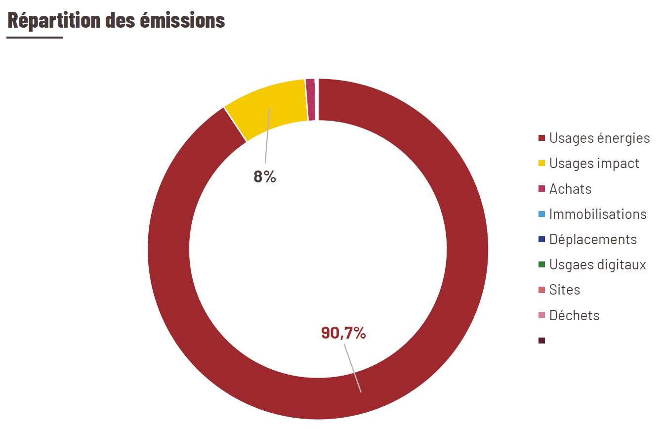 Sur le périmètre de notre fonctionnement propre (déplacements, énergie, numérique, achats, etc.), le bilan s’élève à 82,1 tonnes de CO₂e.