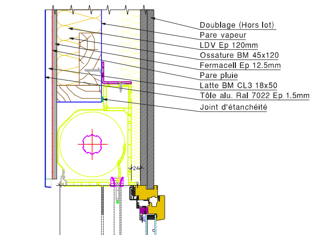 Nous avons réalisé une note de calcul pour vérifier les risques de condensations sur une dizaine de détails constructifs. Pour cela, nous avons utilisé le logiciel WUFI qui permet de réaliser des calculs réalistes du transfert transitoire de chaleur et de masse dans les composants de construction à plusieurs couches soumis à des conditions climatiques naturelles.